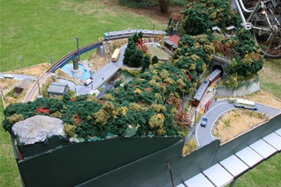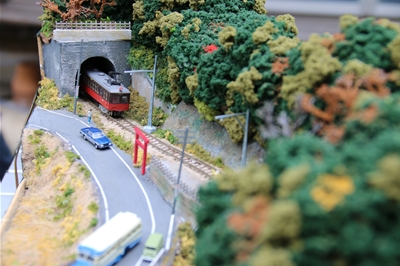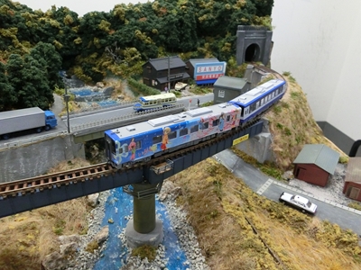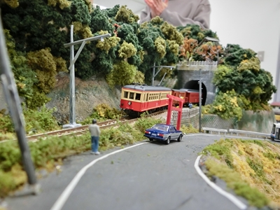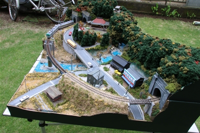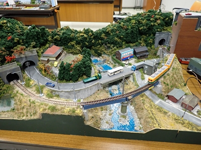 →皆さんに遊んでいただけるように、固定式レイアウトとしては異例の持ち運び式としました。結果的にはこれは大正解でした。