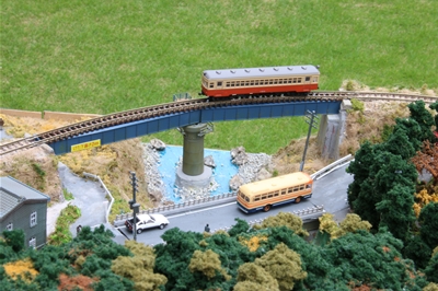 →ローカル線のレイアウトなのに、駅を通過する列車が多数?これって変じゃない?というところから、駅をあえて設けないことにしました。